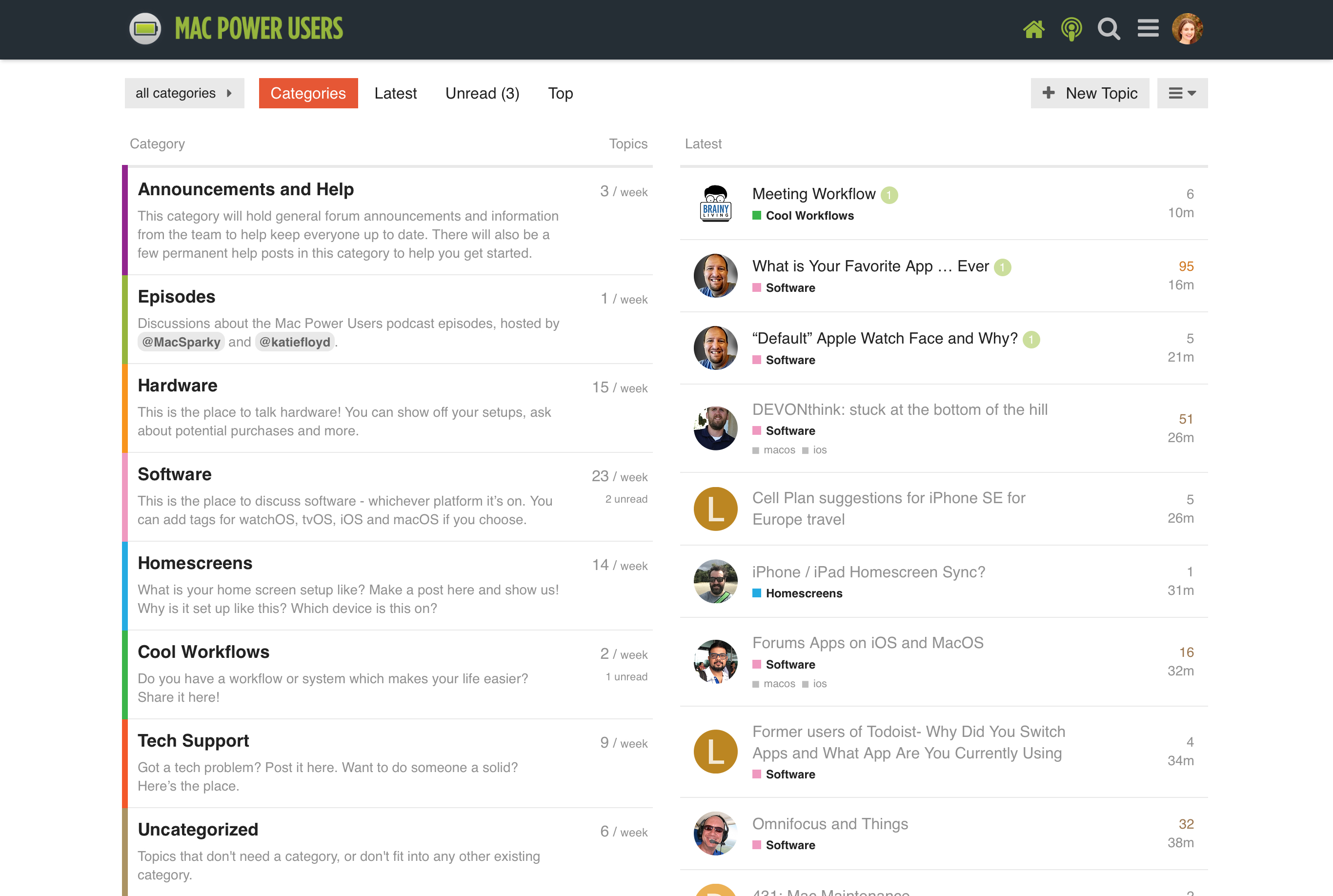 The Mac Power Users community which I have been helping to moderate has a wonderful new home on Discourse. The Facebook group has been archived (which means it is still there, but in read only mode), and talk.macpowerusers.com is already exceedingly popular. I know a large number of the Mac Power Users fans are not Facebook users and hope that they will join this community.